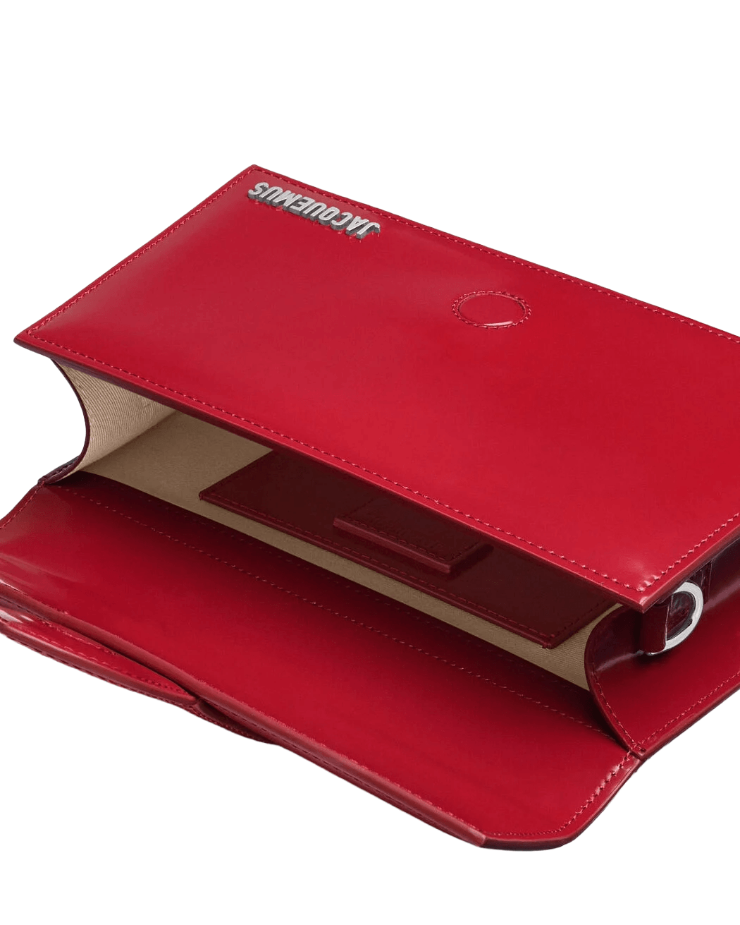 Stand out with this bold and refined crossbody bag by Jacquemus, crafted from glossy red patent calf leather.