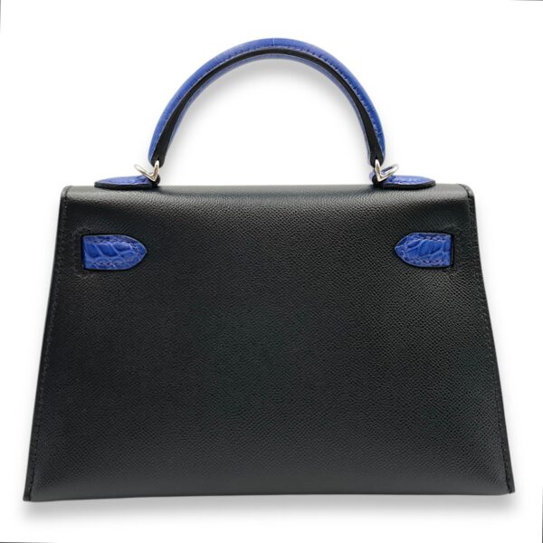 Its color palette pairs deep navy tones with rich cobalt blue, complemented by cool-toned palladium hardware. The result is a visually striking piece that captures both classic Hermès craftsmanship and contemporary edge. Delivered in brand new condition with full set (box, dustbag, original receipt), this mini Kelly is an ideal choice for collectors seeking something exceptional and understated.