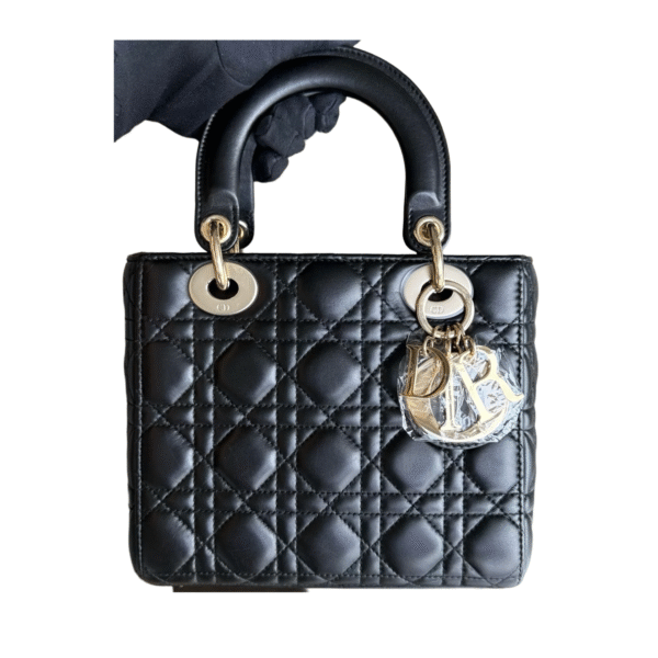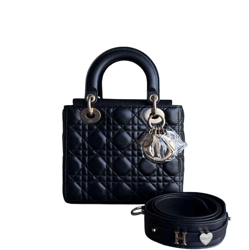 The Dior Lady Small Flap MyABC is a modern reinterpretation of the house’s most iconic silhouette. Crafted in luxurious black cannage lambskin leather, this version is elevated with gold-tone hardware and signature ABC charms, offering a playful yet refined touch of personalization.