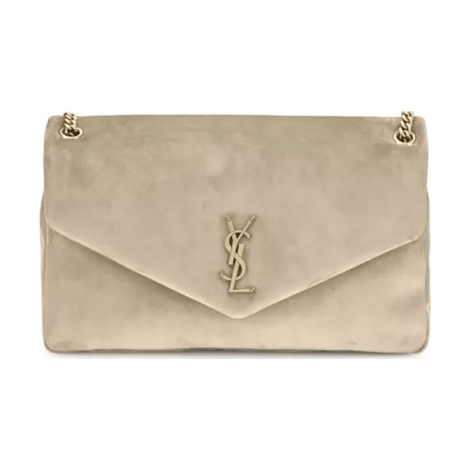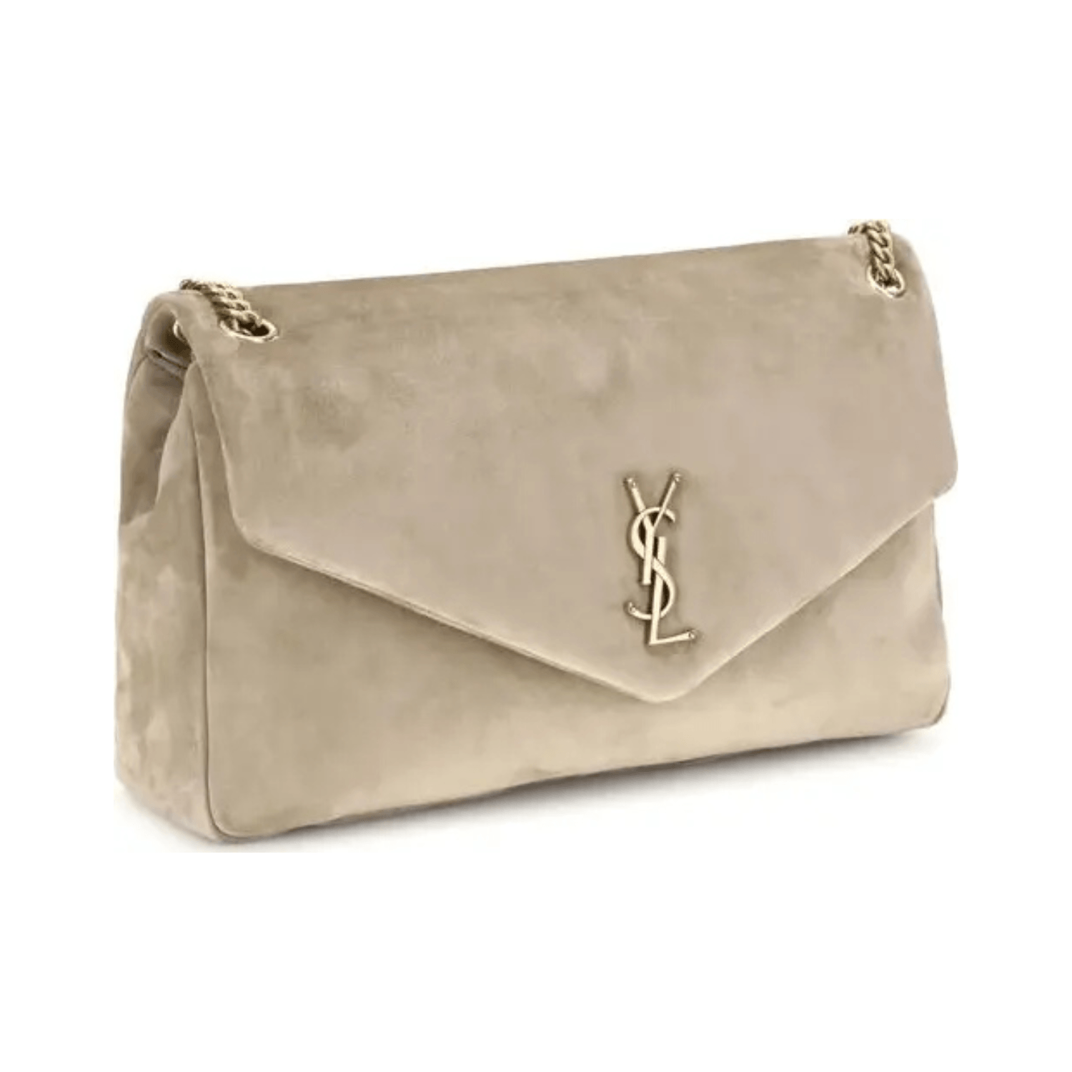 Crafted in 100% calfskin leather, this elegant YSL bag features a structured silhouette, subtle suede finish, and a signature gold-toned YSL logo on the magnetic flap closure.